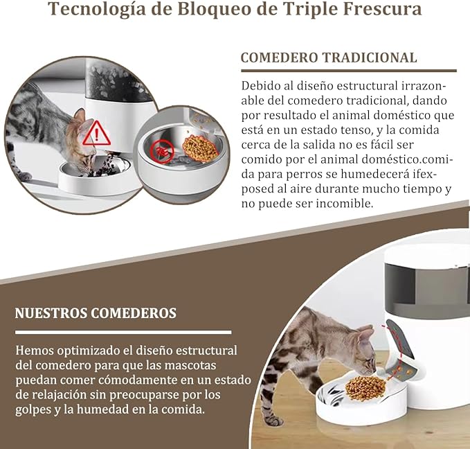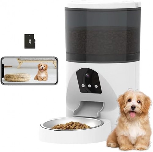 Alimentador Automático con 3MP Camara para Perros y Gatos, 2.4Ghz WiFi Comedero Inteligente, Temporización, Control Aplicaciones, Grabación de Voz, Doble Potencia 4L