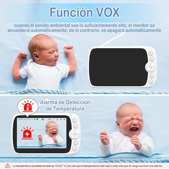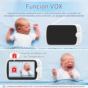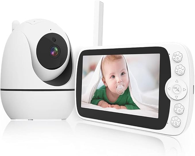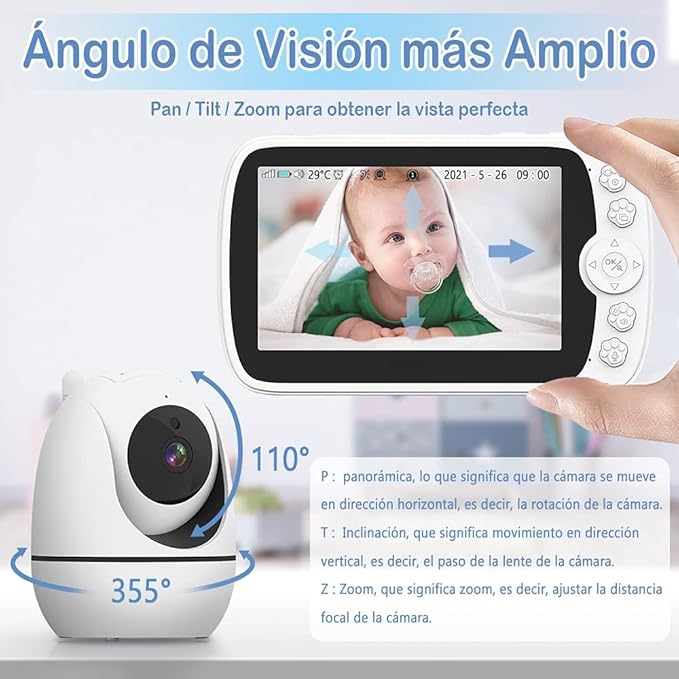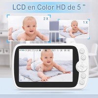 Monitor Bebé 1080P, con 5 HD Mostrar Video Monitor Remoto, Audio Bidireccional, Vigilancia de Temperatura, Canciones de Cuna, Visión Nocturna, Modo VOX AETE054NWT01