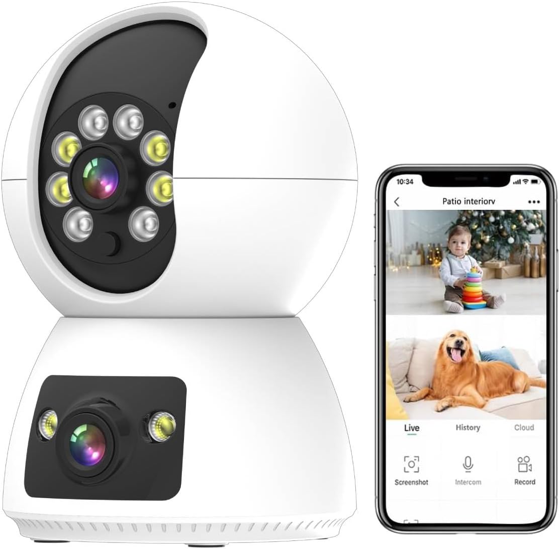 Q24 Cámara de Seguridad Interior, 2MP Cámara WiFi de Doble Lente, Tris Home ICSee App, con Audio Bidireccional, Detección de Movimiento, Visión Nocturna, Compatible Alexa